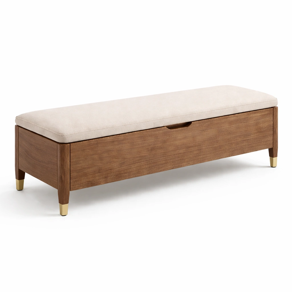 Banco con almacenamiento de madera tapizado en beige