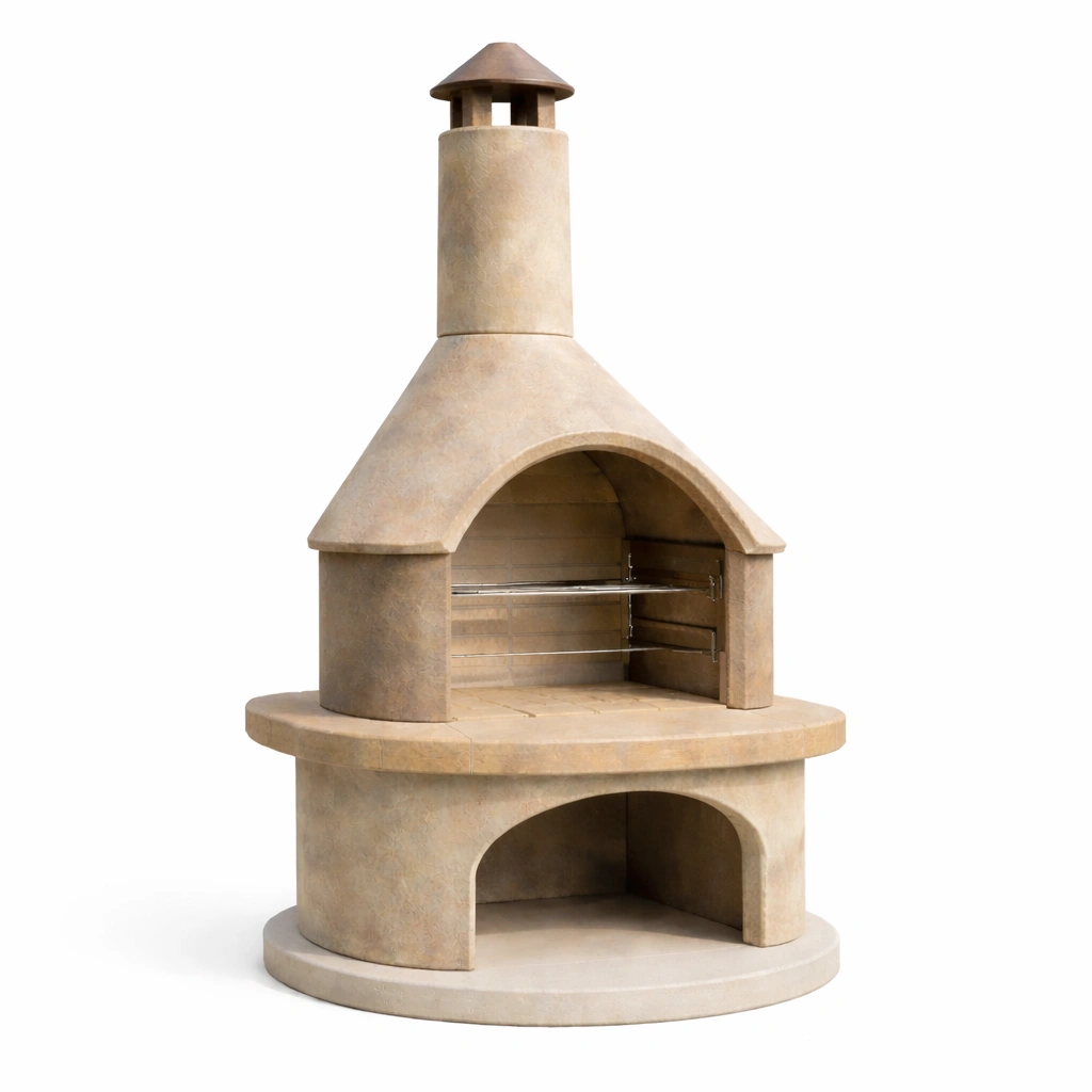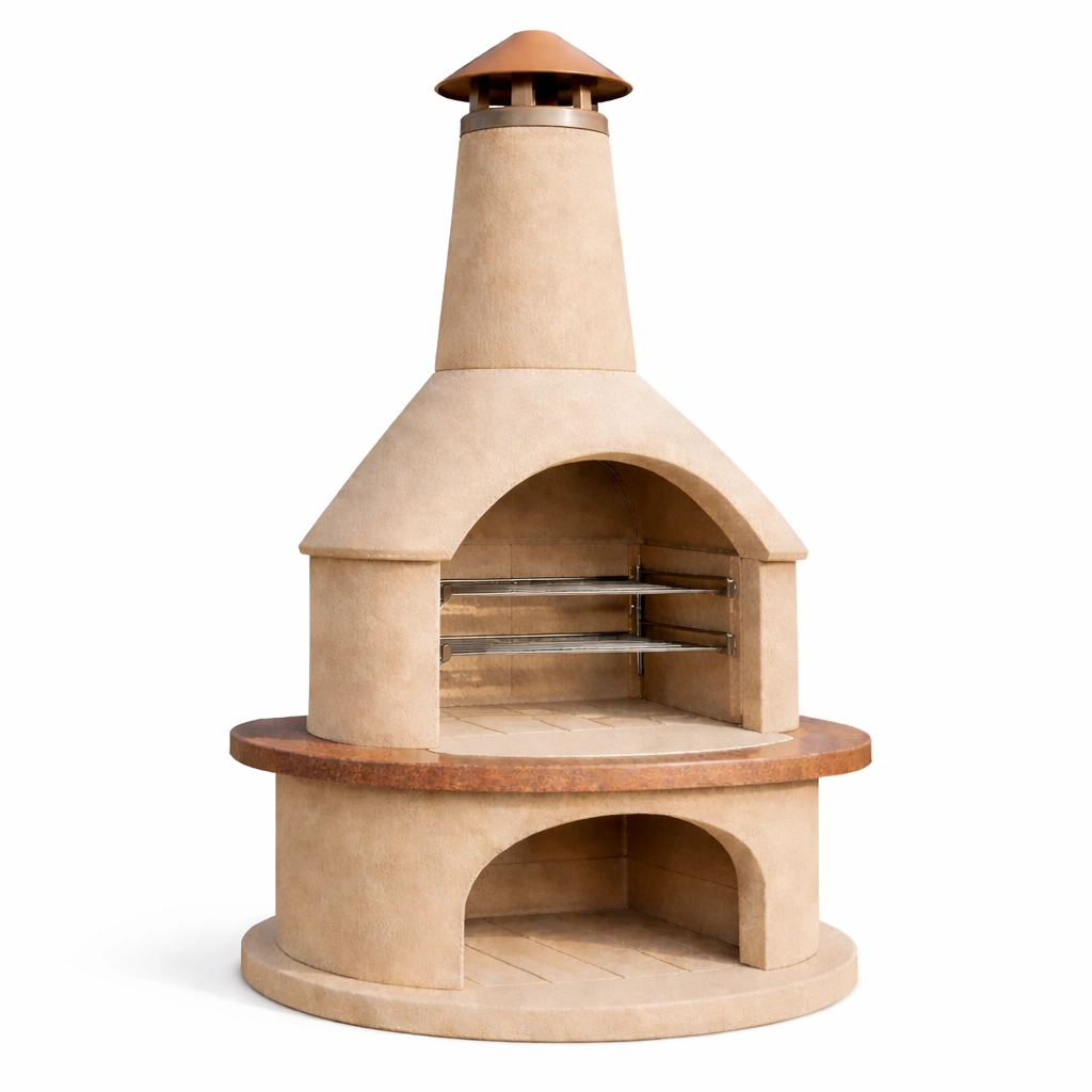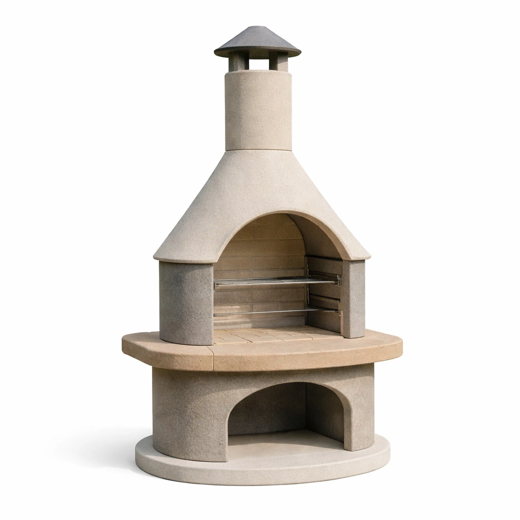 Barbacoa de hormigón refractario con chimenea de acero inoxidable