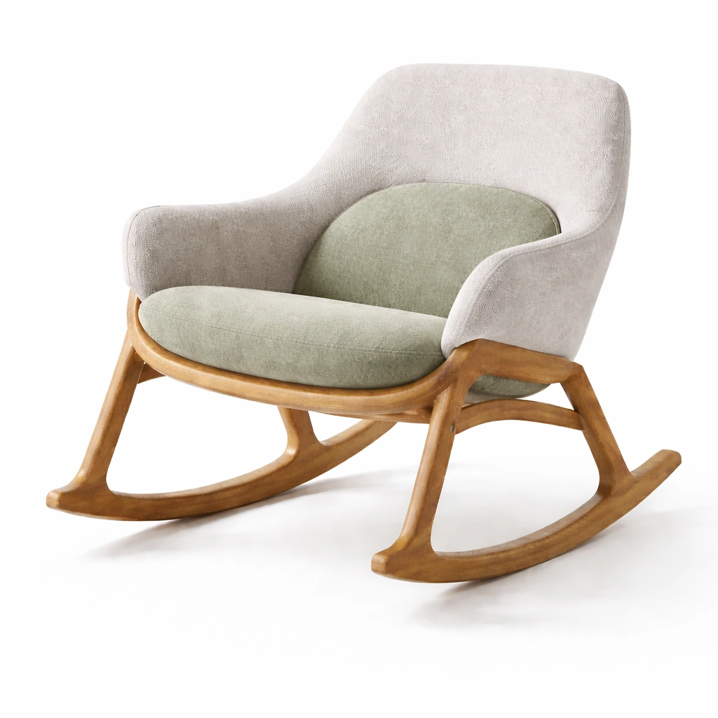 Silla mecedora de roble con tapiceria de poliester gris y verde