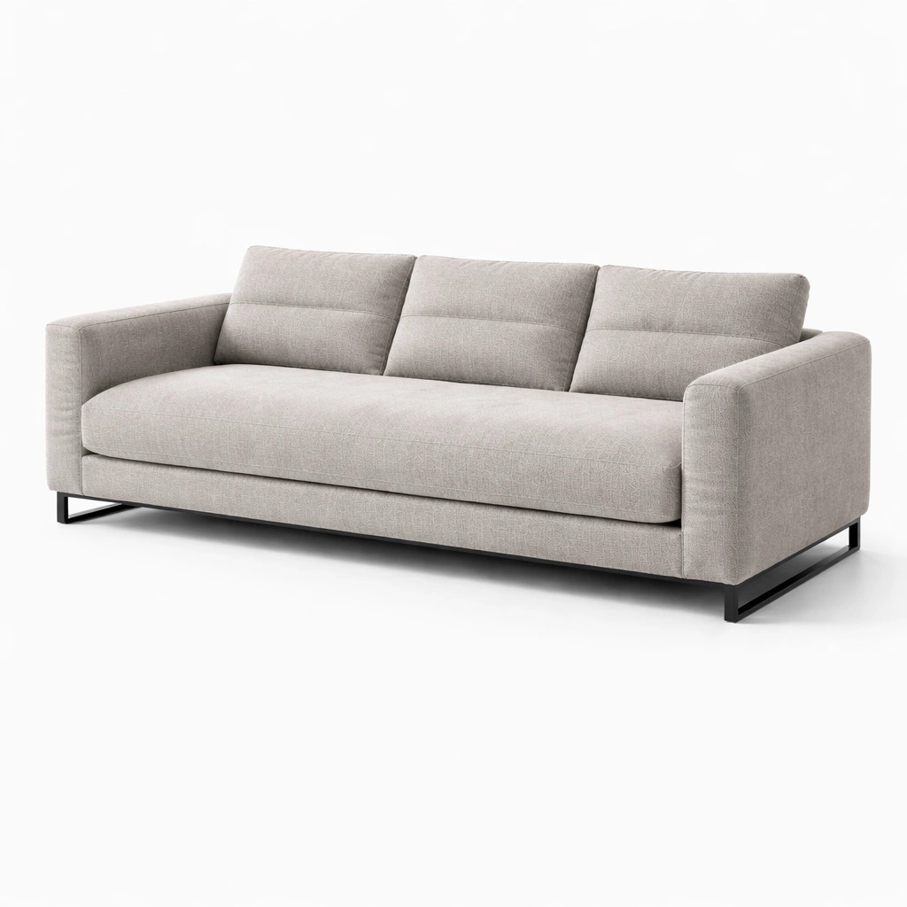 Sofá de tela de poliester con base metalica beige de tres plazas