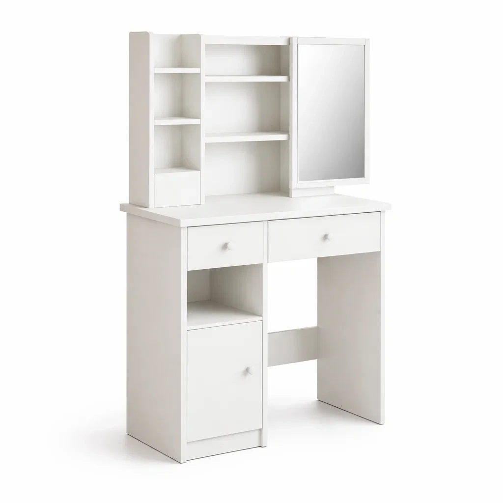 Tocador de mdf con espejo y estanteria blanco 120x50x140 cm