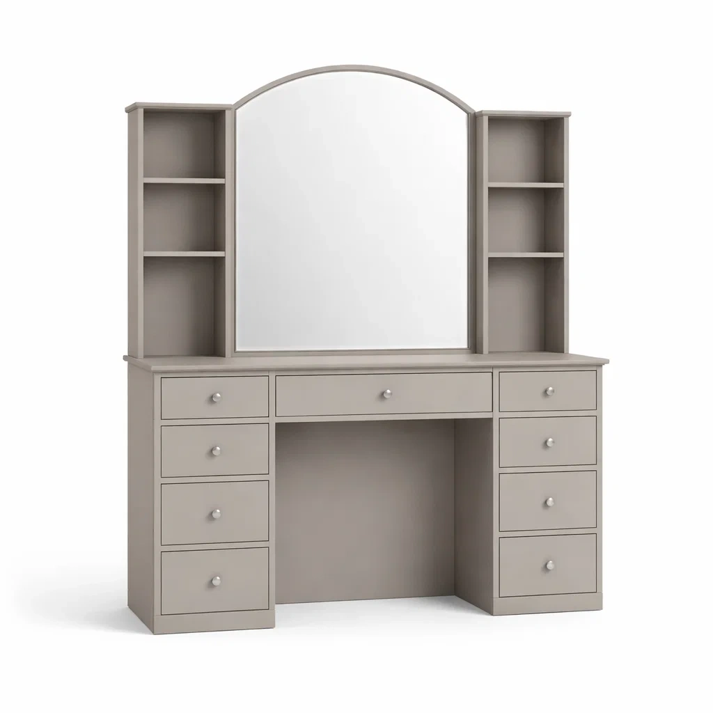 Tocador de mdf con espejo grande y cajones gris