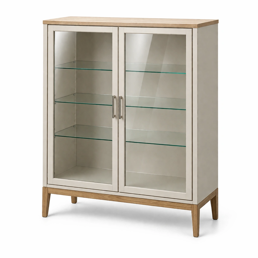 Vitrina de madera y vidrio templado beige y roble 90x40x120 cm